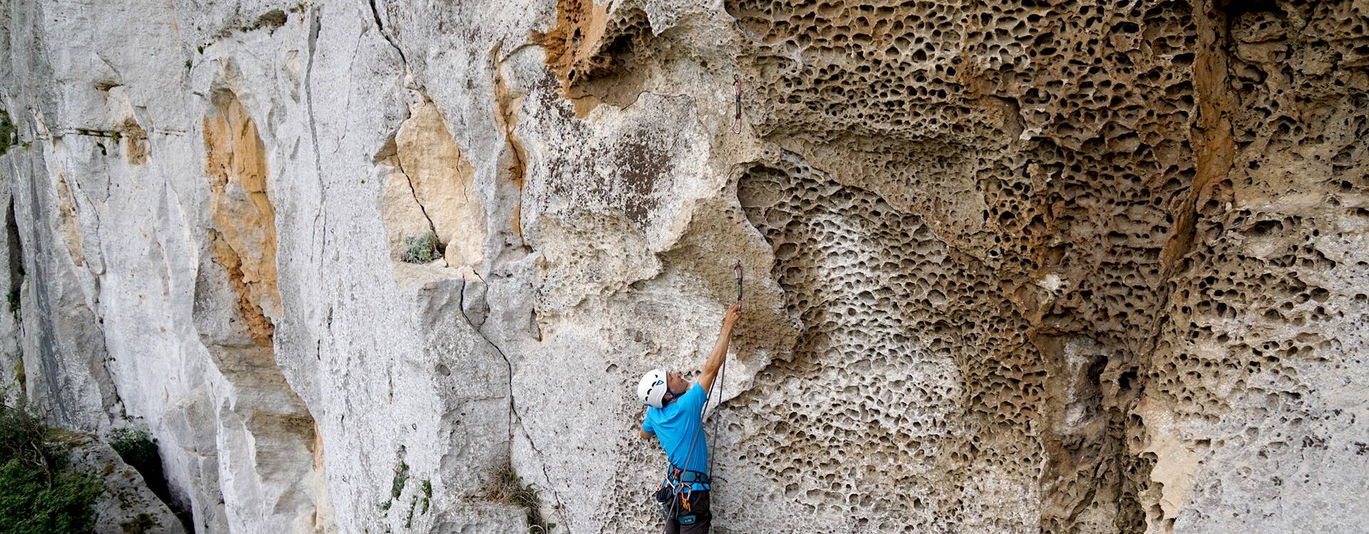 Finale liegt an der ligurischen Küste zwischen Genua und Ventimiglia. Die Lage am Meer und die relativ kurze Anreise machen das Gebiet zu einem klettertouristischen Klassiker. Der Fels ist wie Don Corleone nach einem Mordanschlag: unglaublich löchrig, dafür meist eher steil, so dass eine gute Auswahl an Routen erst ab dem 5.Schwierigkeitsgrad zu haben ist. Dann aber ist das Potenzial mit über 2500 Routen gewaltig, sodass wir je nach Sonneneinstrahlung und Temperatur viele Optionen offen haben. Im so genannten «oltre» Finale hat sich in den letzten Jahren viel getan. Auch hier gibt’s Routen in Hülle und Fülle. Nach einem erfolgreichen Klettertag geniessen wir das «dolce far niente» mit köstlichen italienischem Essen und gutem Wein.