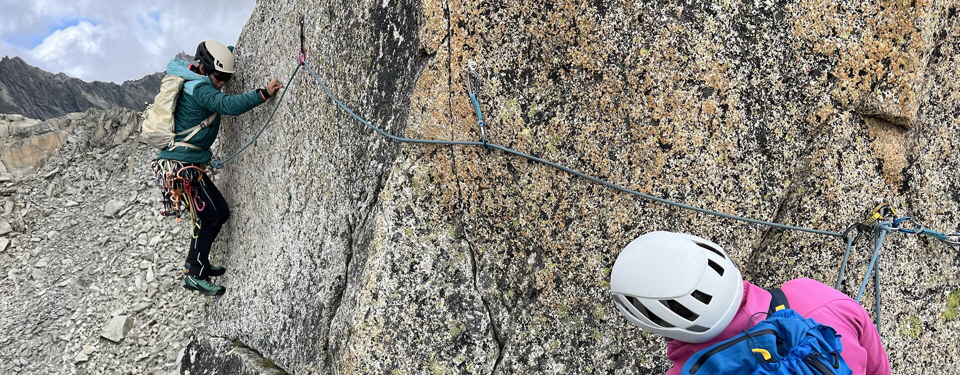 Ausbildung und Klettern gemäss YOYO-Kurssystem im Gebiet. Gegen Ende der Woche werden wir uns auch mit der Thematik Mehrseillängen befassen und eine einfache Mehrseillängentour klettern. Kursende um ca. 15.00 Uhr beim Hotel Tiefenbach.